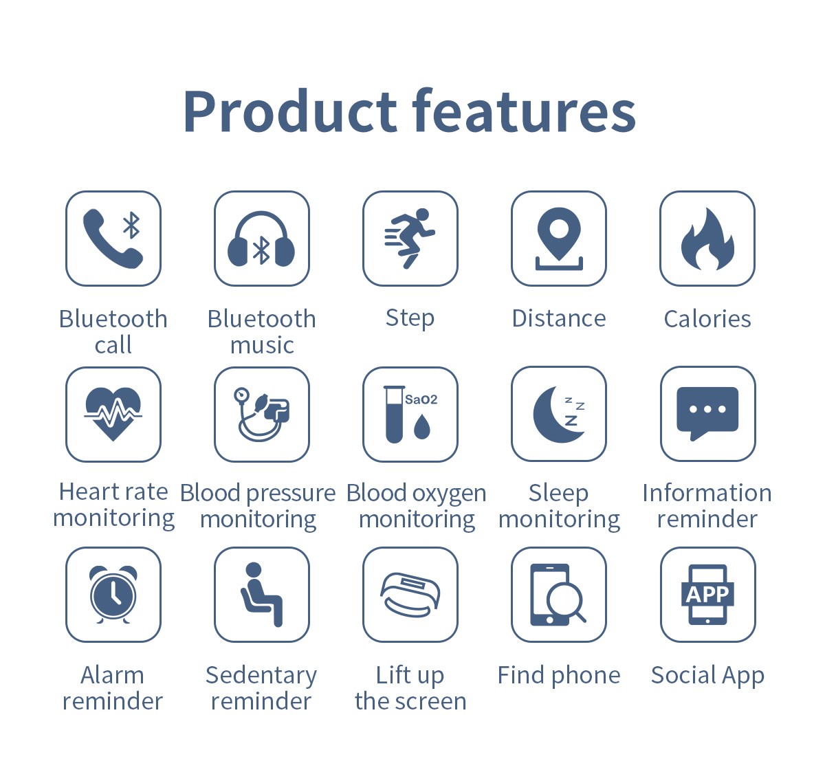 Smart blood pressure and oxygen heart rate watch, Color display, high-definition resolution, available to call and listen to music. Convenient and fast.